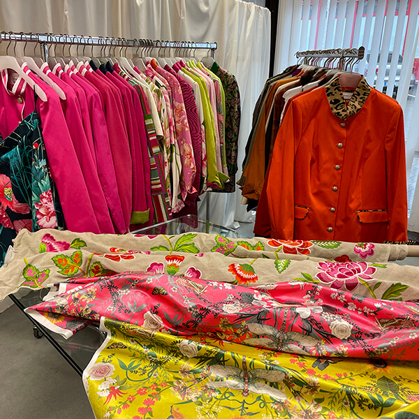Außerdem präsentieren und verkaufen wir unsere Mode auch auf Veranstaltungen, wie Landpartien, in Hotels und auf Messen.